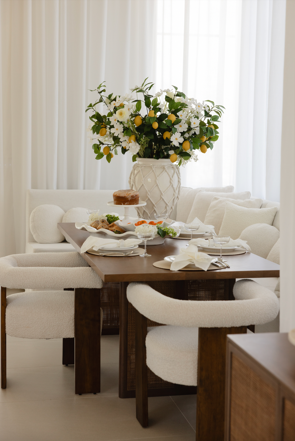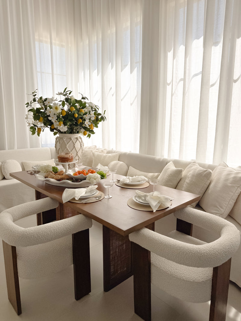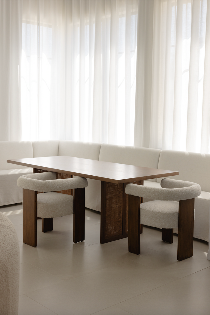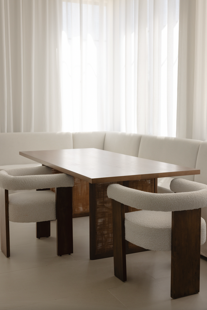 Material: Boucle Fabric / Rubberwood