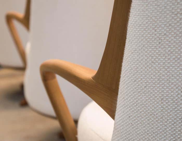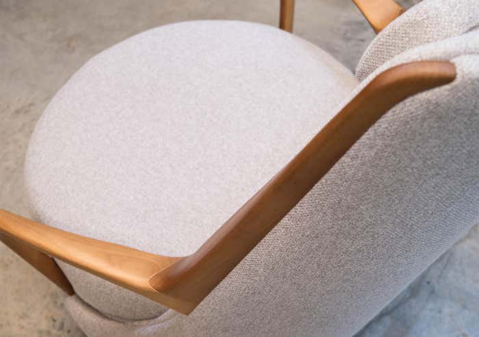 Manufacturing combines precision diamond tooling and automation with traditional artisan woodworking and upholstery techniques, elevating both form and detail to an exceptional level. Ergonomically designed, the chair offers superior comfort through thoughtful proportions and intentional design, making it ideal for lasting use within modern interiors.