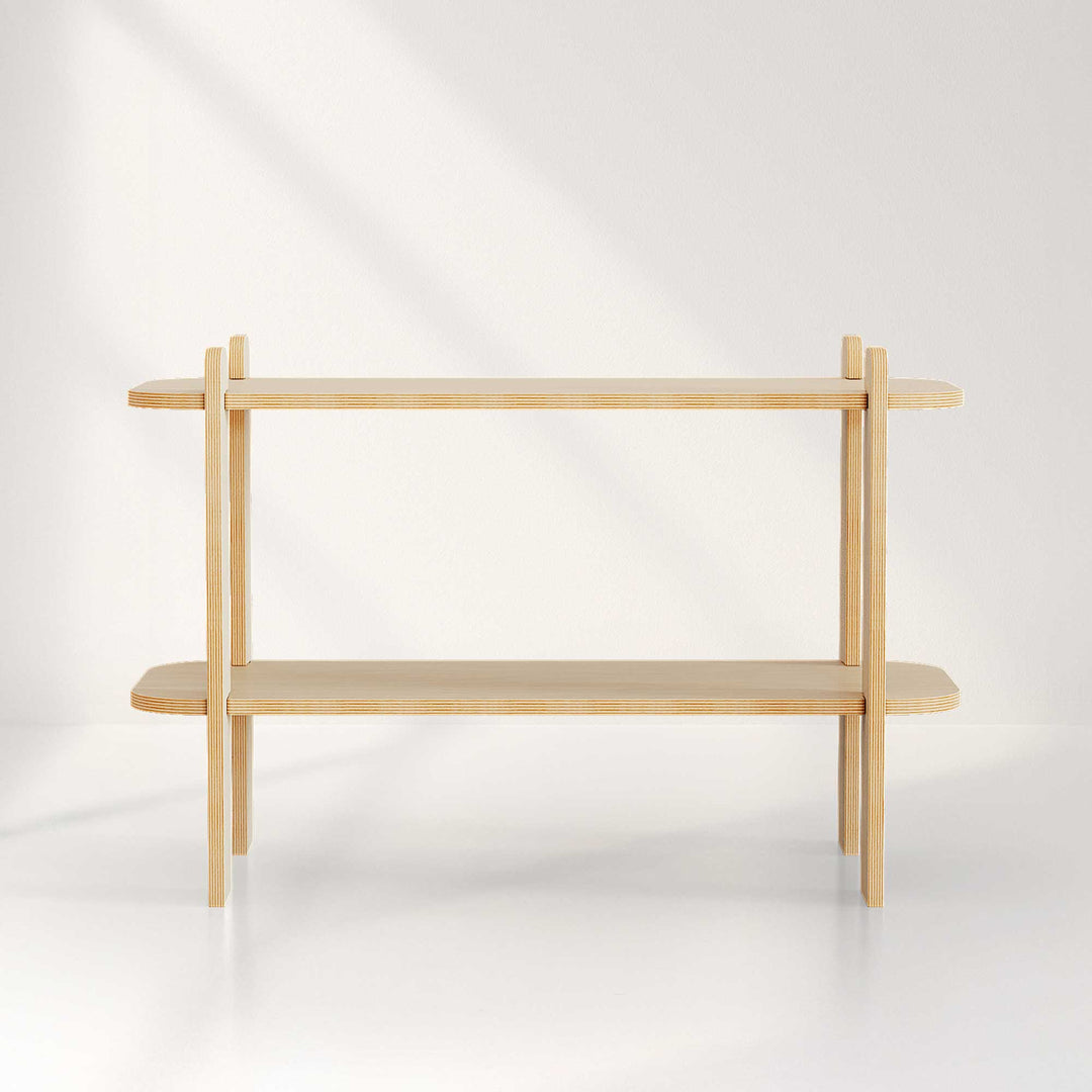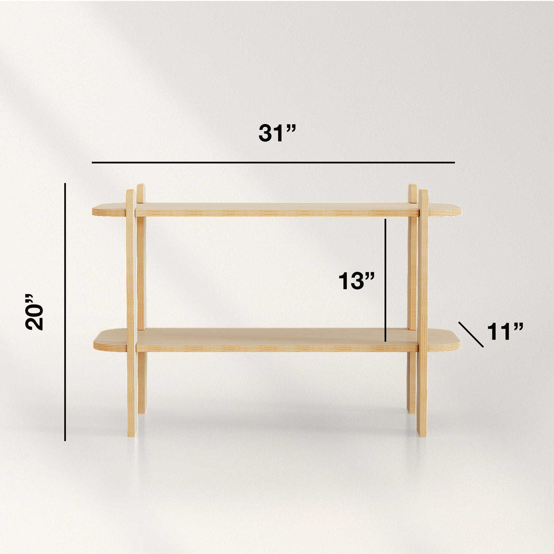 Transform your space with the Unfinished Modern Shelf. Available in two or three tiers, it offers easy assembly with no tools required. This adaptable shelf serves as a stylish side table, an elegant book display, a charming plant showcase, or a practical shoe organizer. Its sleek design effortlessly complements any decor, making it an essential addition to your home.